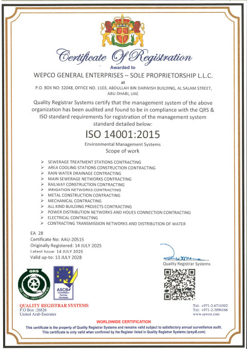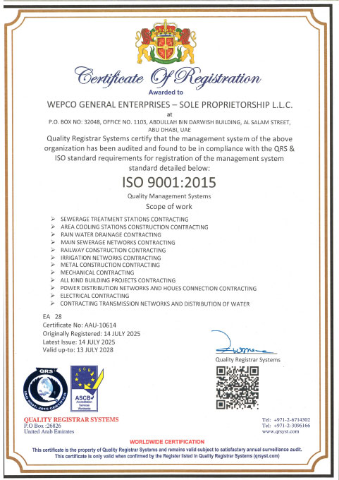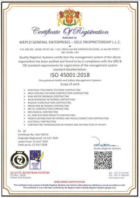 Our fully integrated operational management system, certified under ISO 9001, ISO 45001, and ISO 14001, ensures a healthy, safe, and pollution-free work environment across all our projects/sites. This certification underscores our dedication to occupational health, safety, and environmental management, aligning with international standards and best practices.